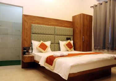Our hotel features clean and spacious AC rooms, deluxe rooms, and essential facilities like Free Wi-Fi, Parking, Laundry, Breakfast availability, a Geyser, Air Conditioning and a TV in every room.