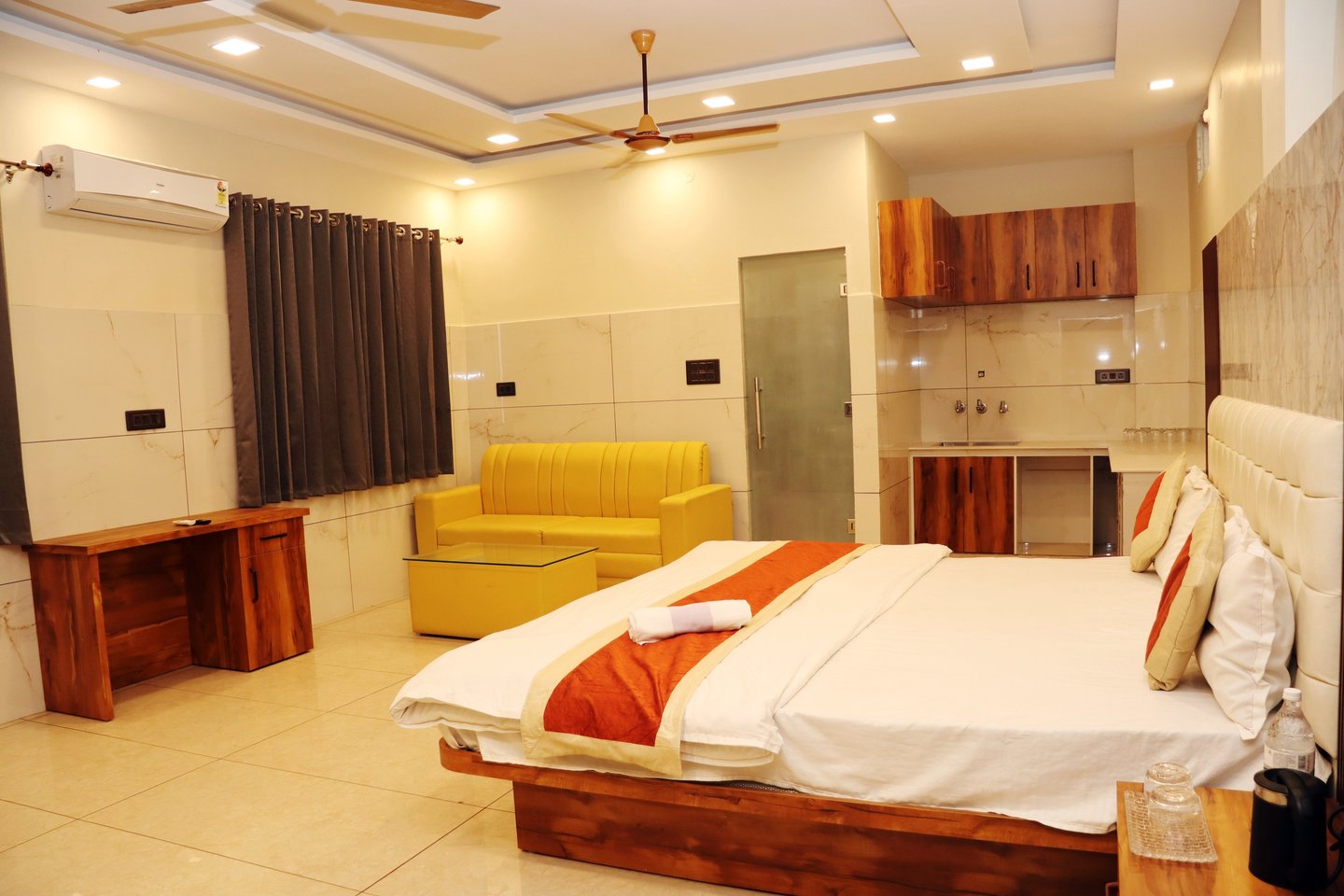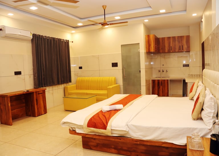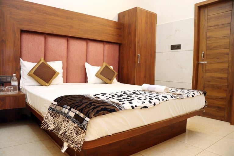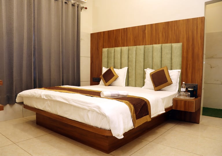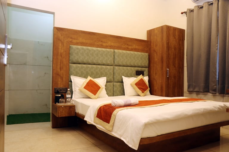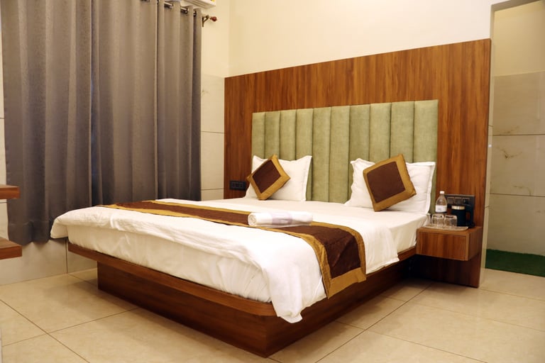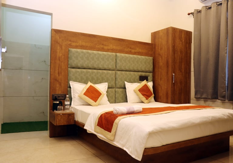 Our hotel features clean and spacious AC rooms, deluxe rooms, and essential facilities like Free Wi-Fi, Parking, Laundry, Breakfast availability, a Geyser, Air Conditioning and a TV in every room.