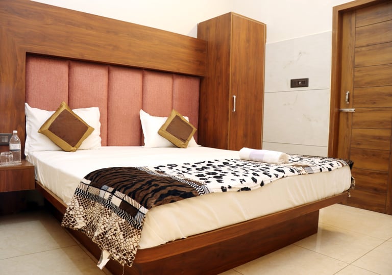 Relax in style and comfort with our deluxe rooms β your peaceful retreat in Haridwar.